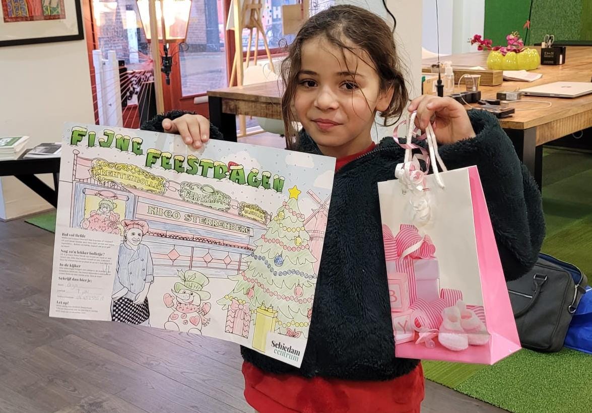 Donderdag 12 januari mochten de drie prijswinnaars van de Oliebollenactie met Nicco Sterrenberg hun prijs bij SHOP ophalen. Trots als een pauw op hun kleurplaten, maar ook wat onwennig natuurlijk, stapten zij bij centrummanager Pim binnen. Je kunt wel zien dat de zevenjarige Aya de actie uiterst serieus heeft genomen. Alles keurig binnen de lijntjes. Kidzspecials leverde dan ook een serieuze prijs, net Kinderwinkel D’uk. Bedankt!